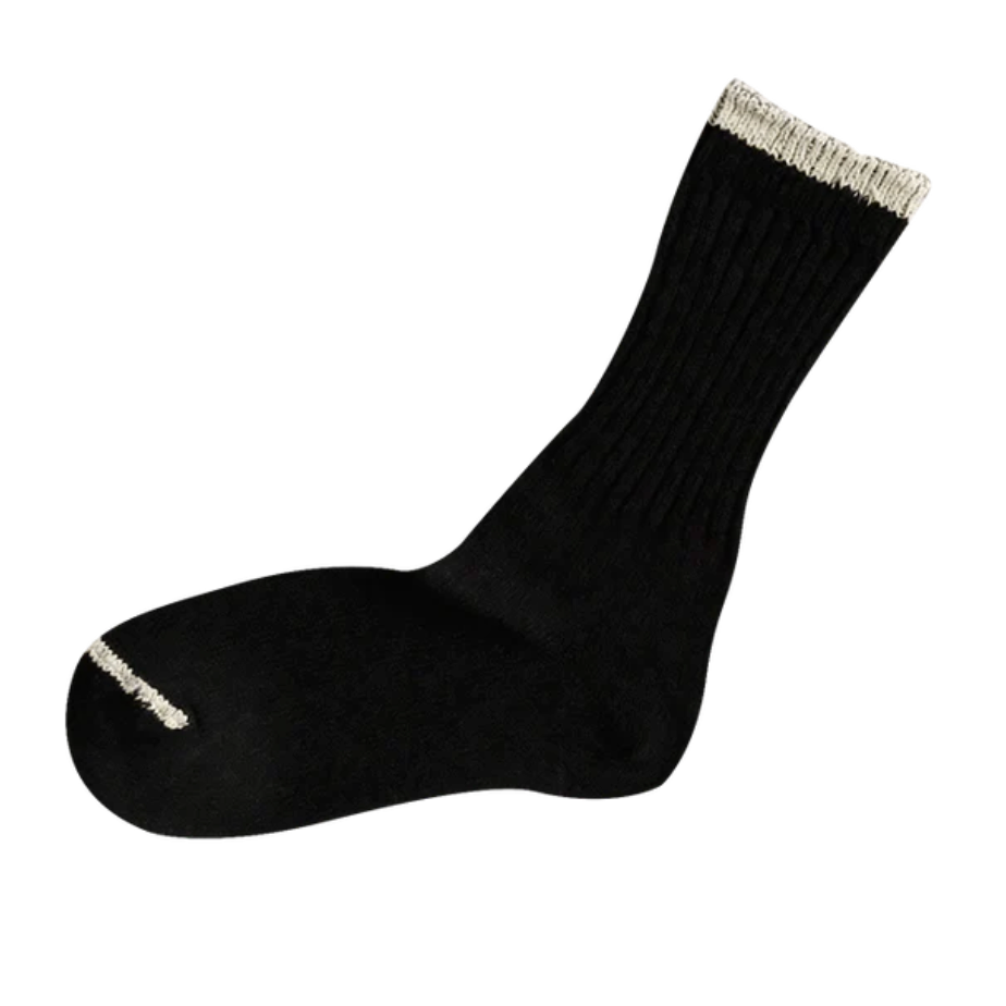 Breathable black eco-silk and recycled cotton socks with contrast white trim.