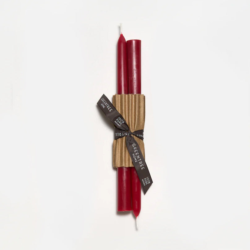 An Everyday Taper candle in Rhubarb. Hand poured in New York State and made from 100% pure North American beeswax.