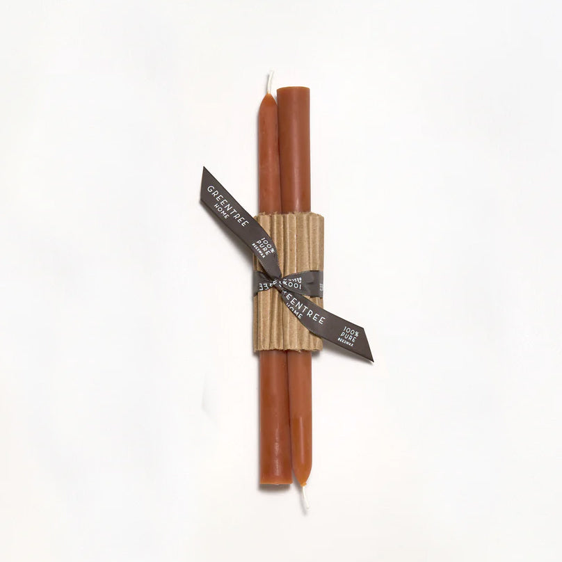 An Everyday Taper candle in Terracotta. Hand poured in New York State and made from 100% pure North American beeswax.