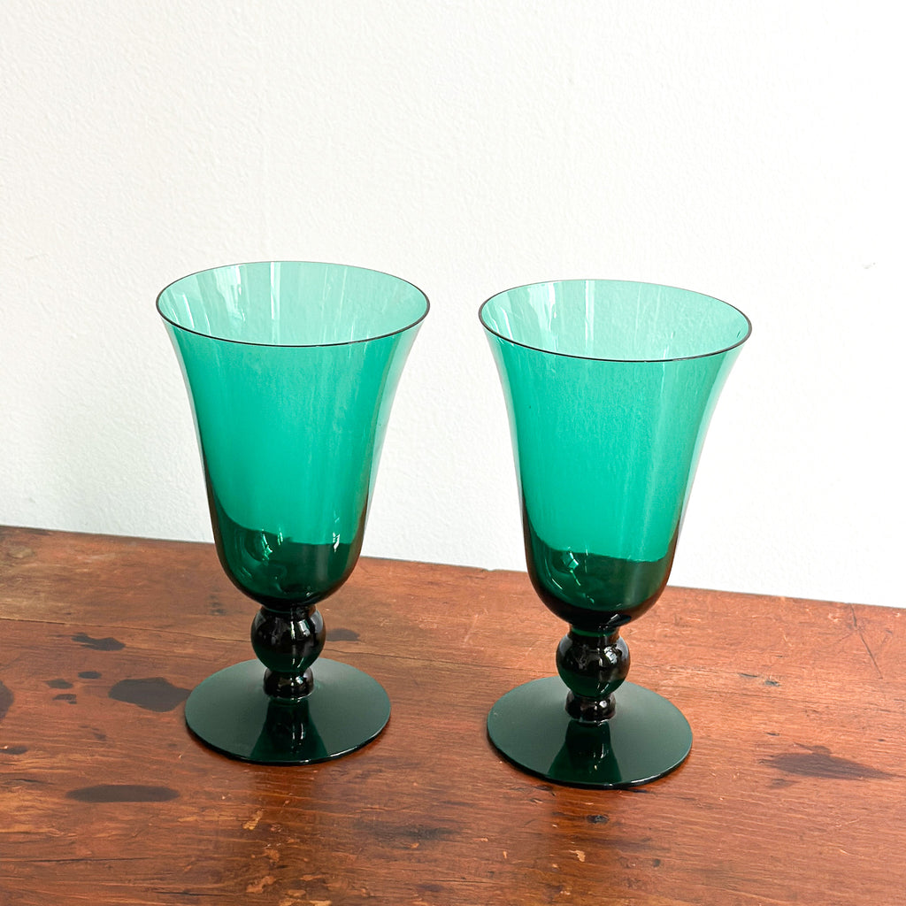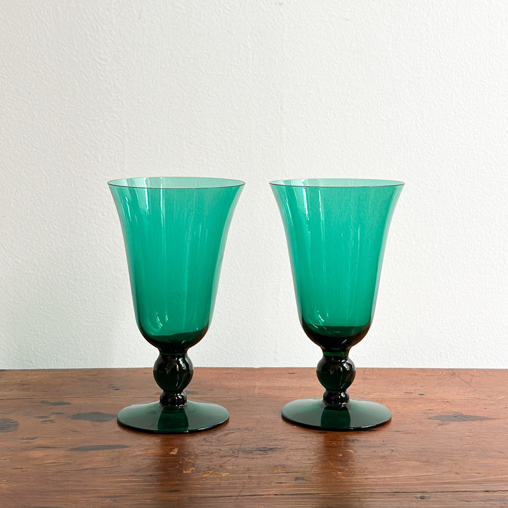 Vintage Teal Stemmed Wine Goblet, Set of 2