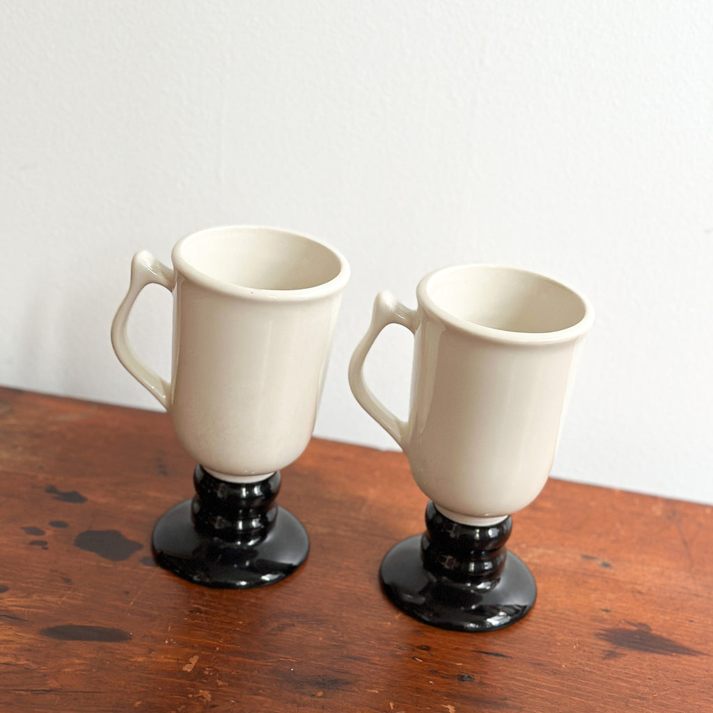 Vintage Black & White Ceramic Irish Coffee Mugs, Set of 2