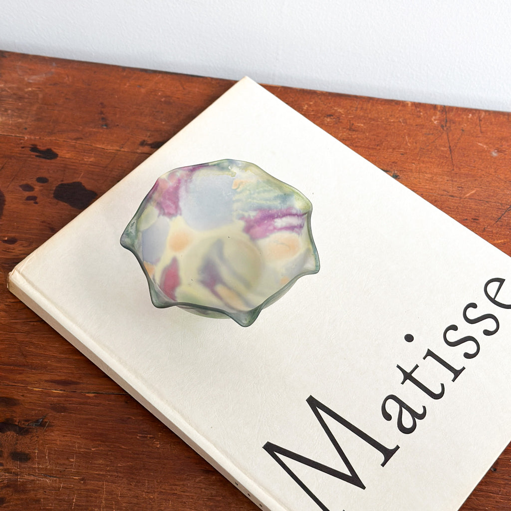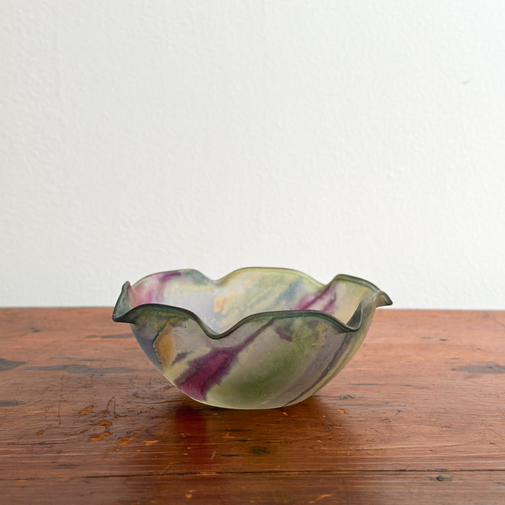 Multi-Color Frosted Glass Bowl with Ruffled Rim