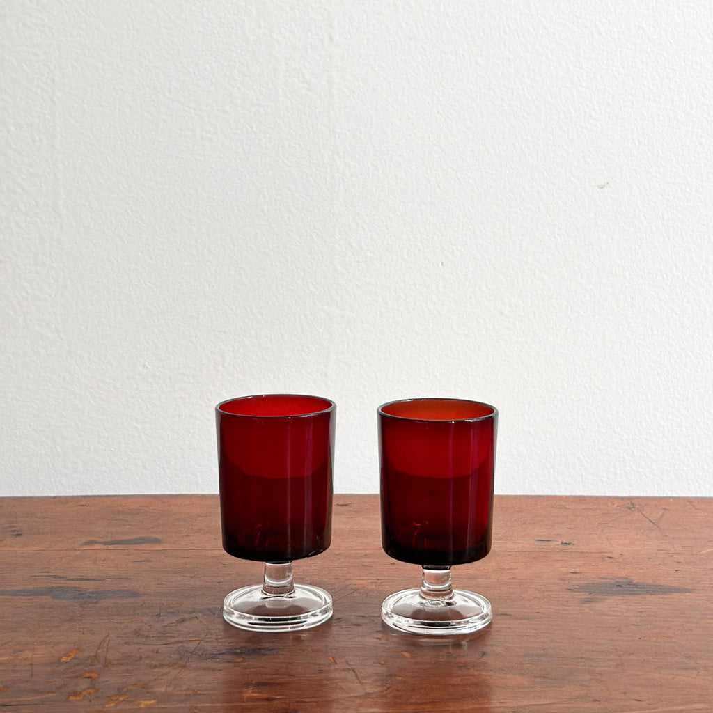 Vintage Red Glass Wine / Cocktail Glass, Set of 2