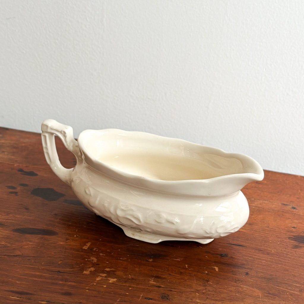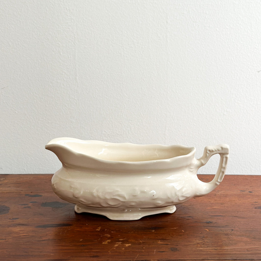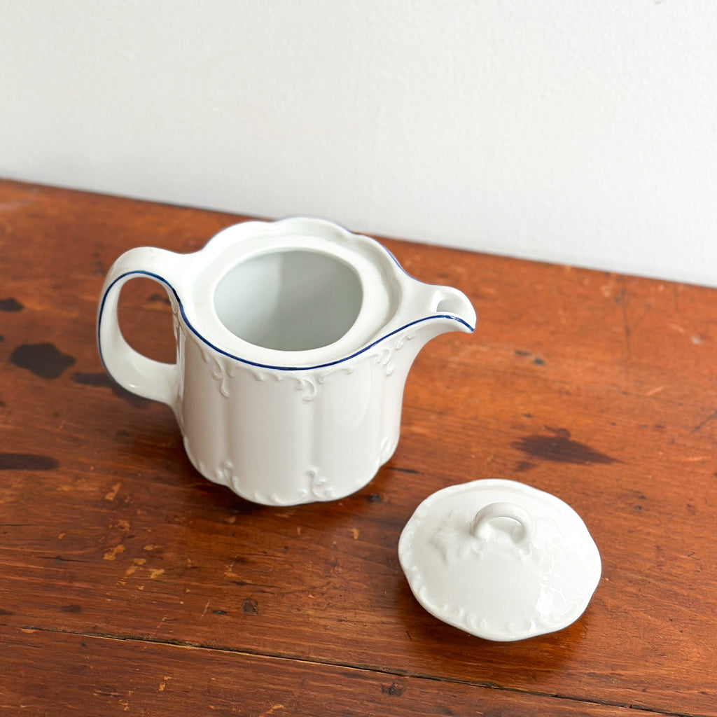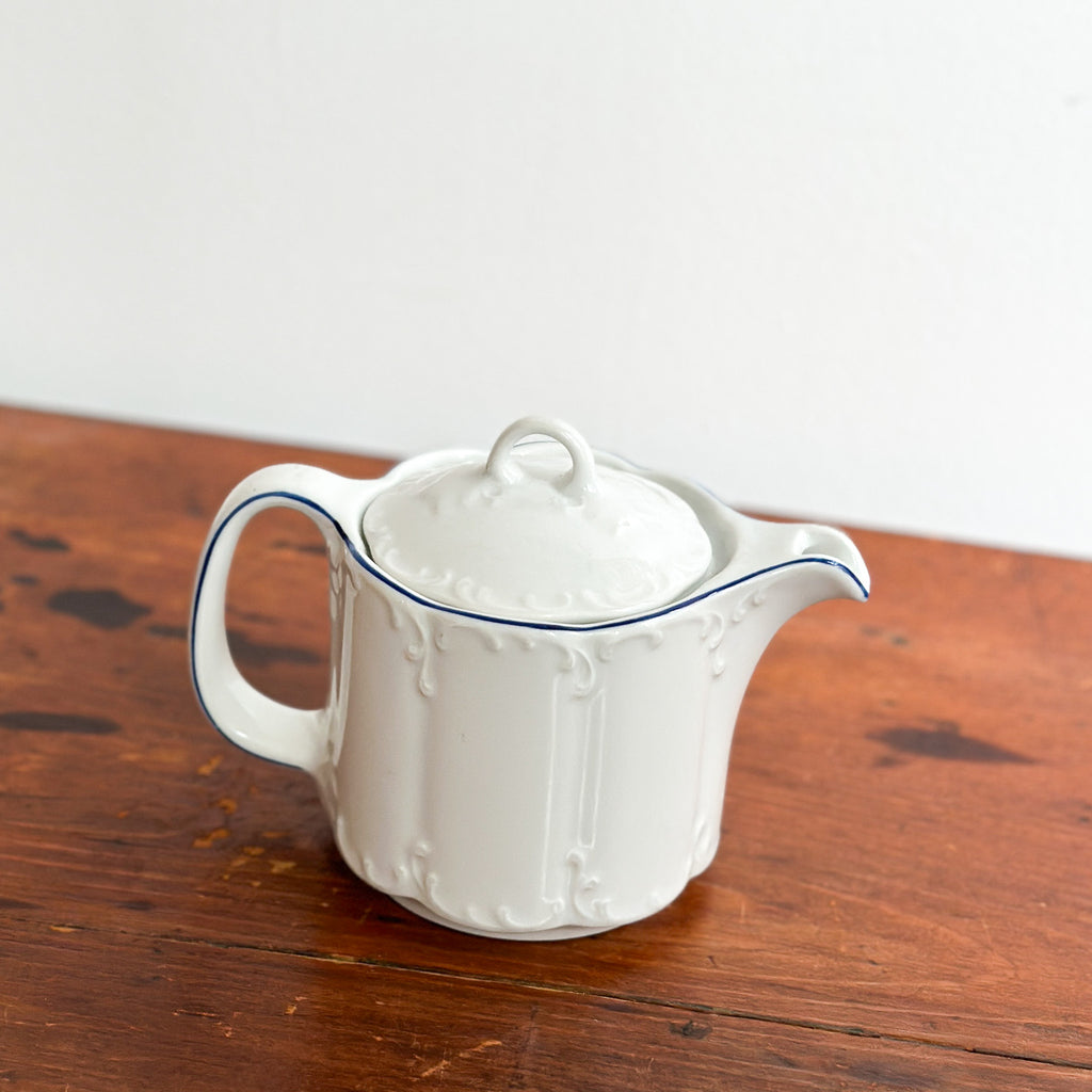 Vintage Ceramic Tea Pot with Blue Pinstripe Border