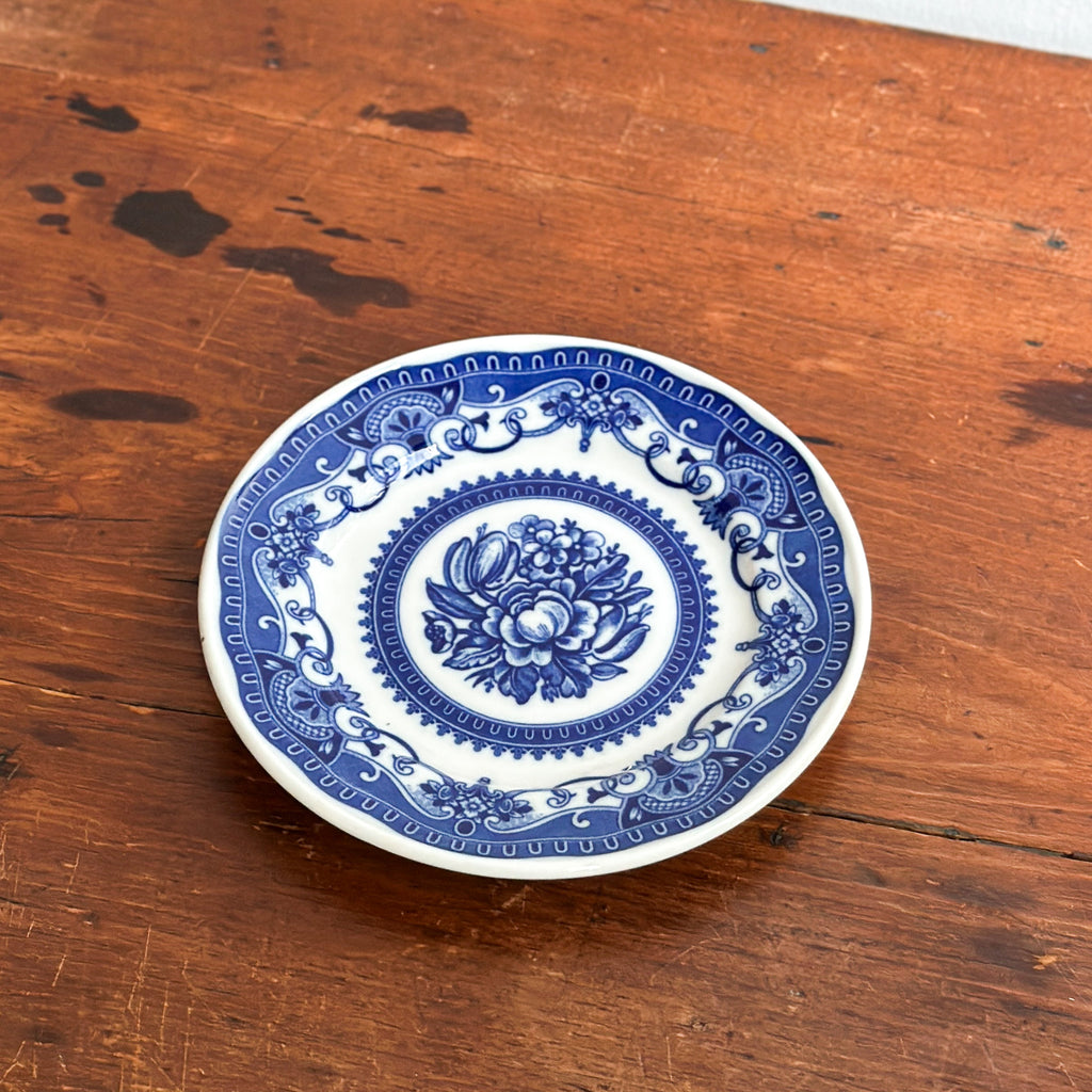 Vintage Ceramic Treat Plate with Blue Floral Design
