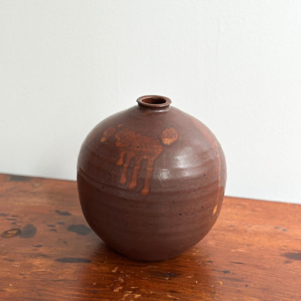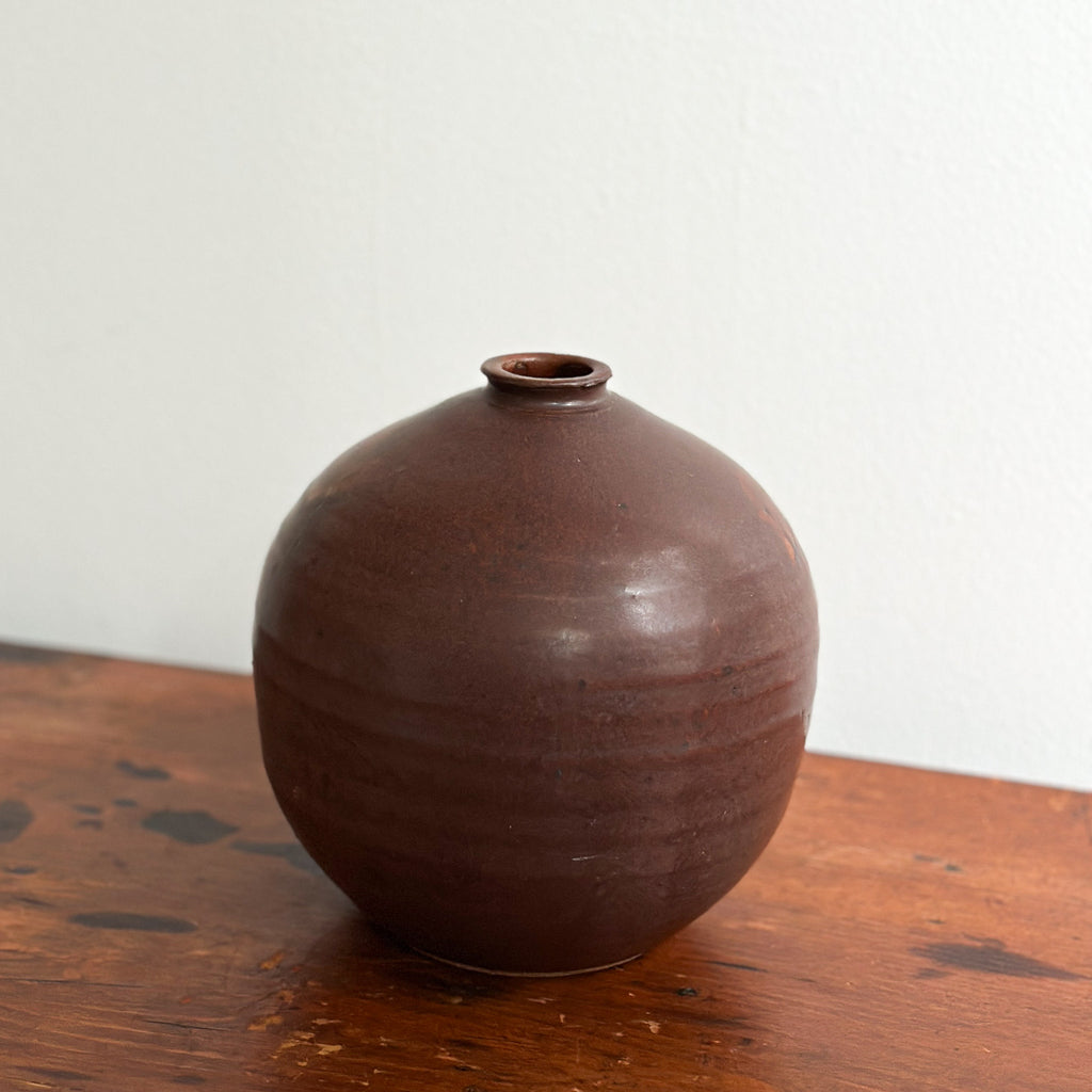 Rounded Stoneware Vase in Burnt Umber Glaze