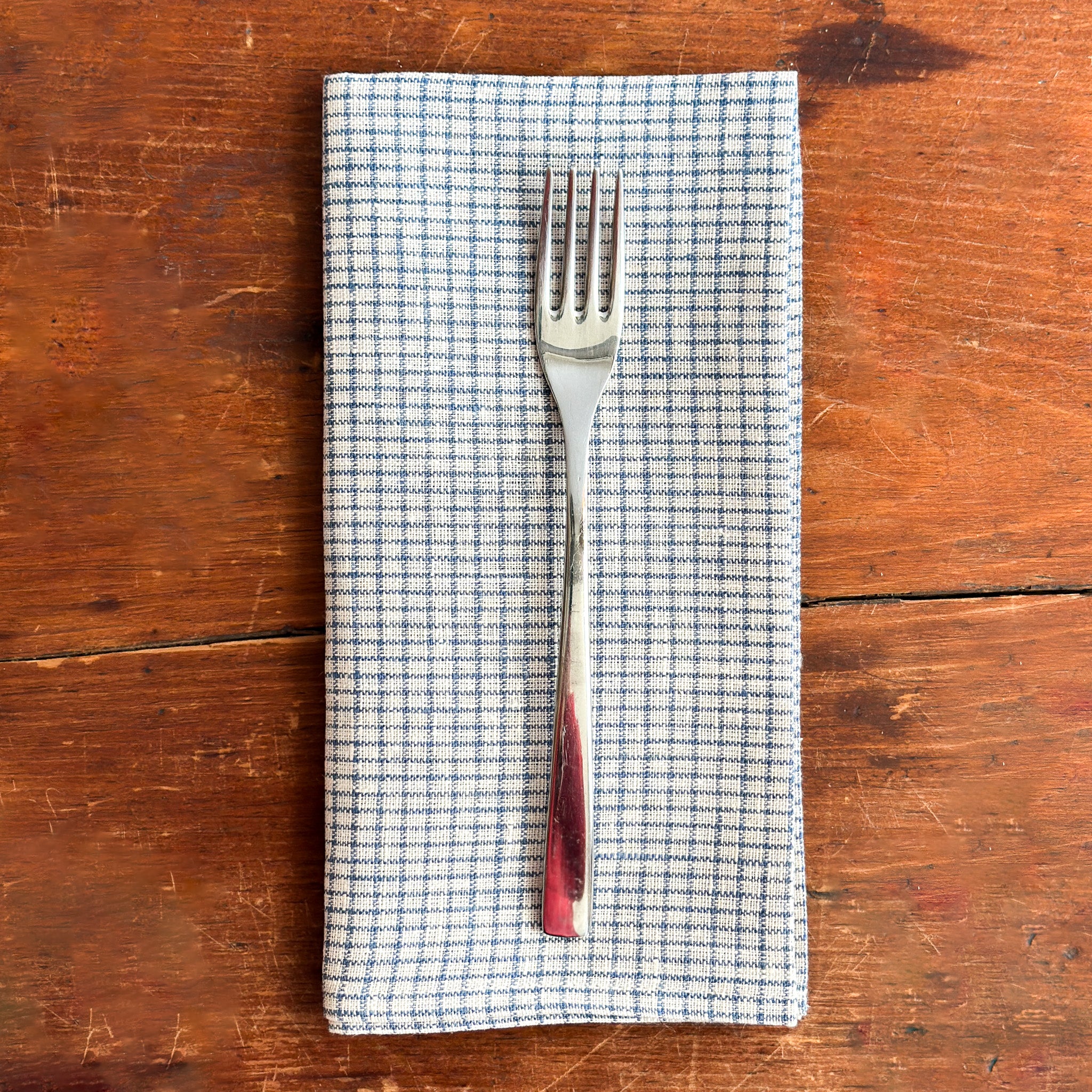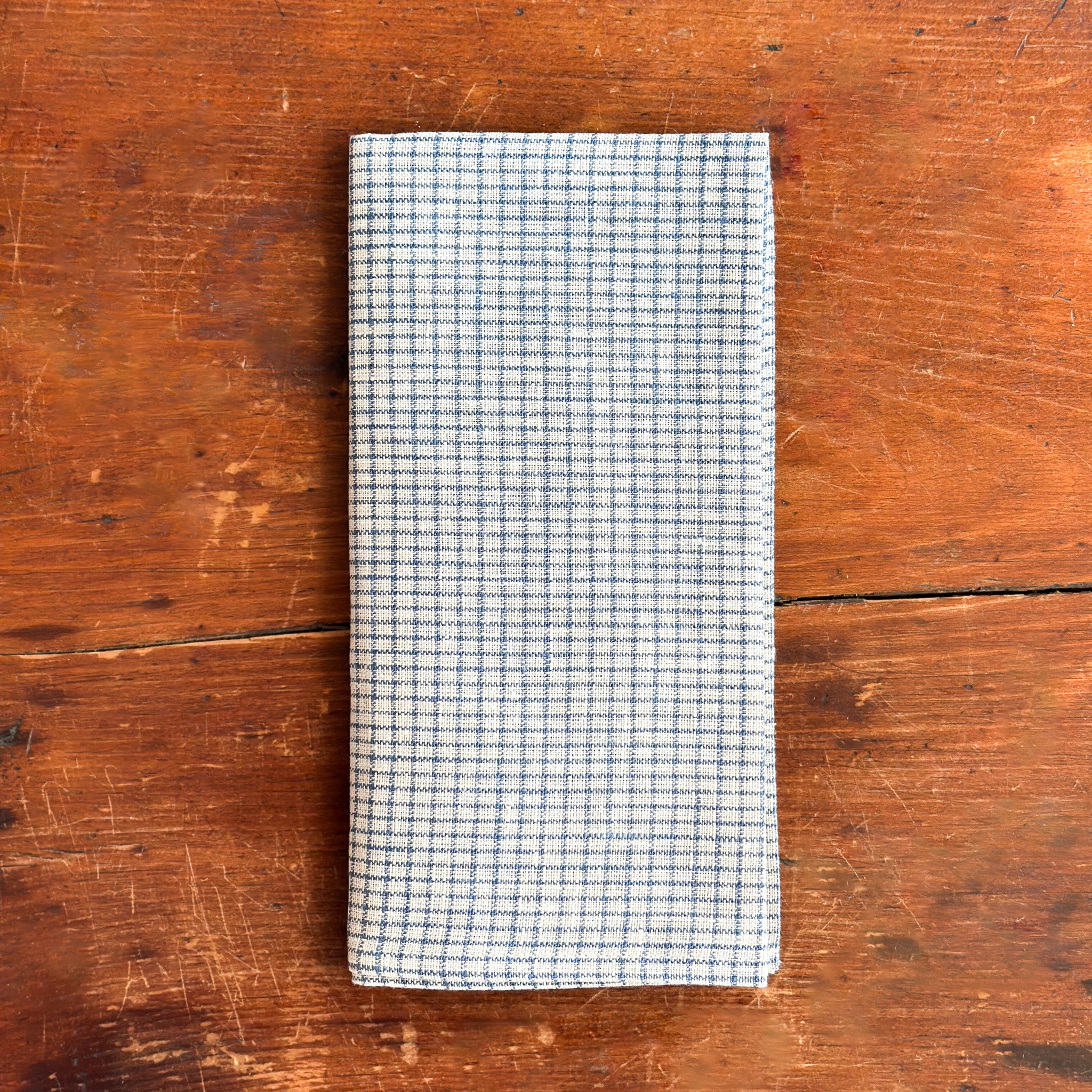 Linen napkin in timeless white & dusty blue pattern.