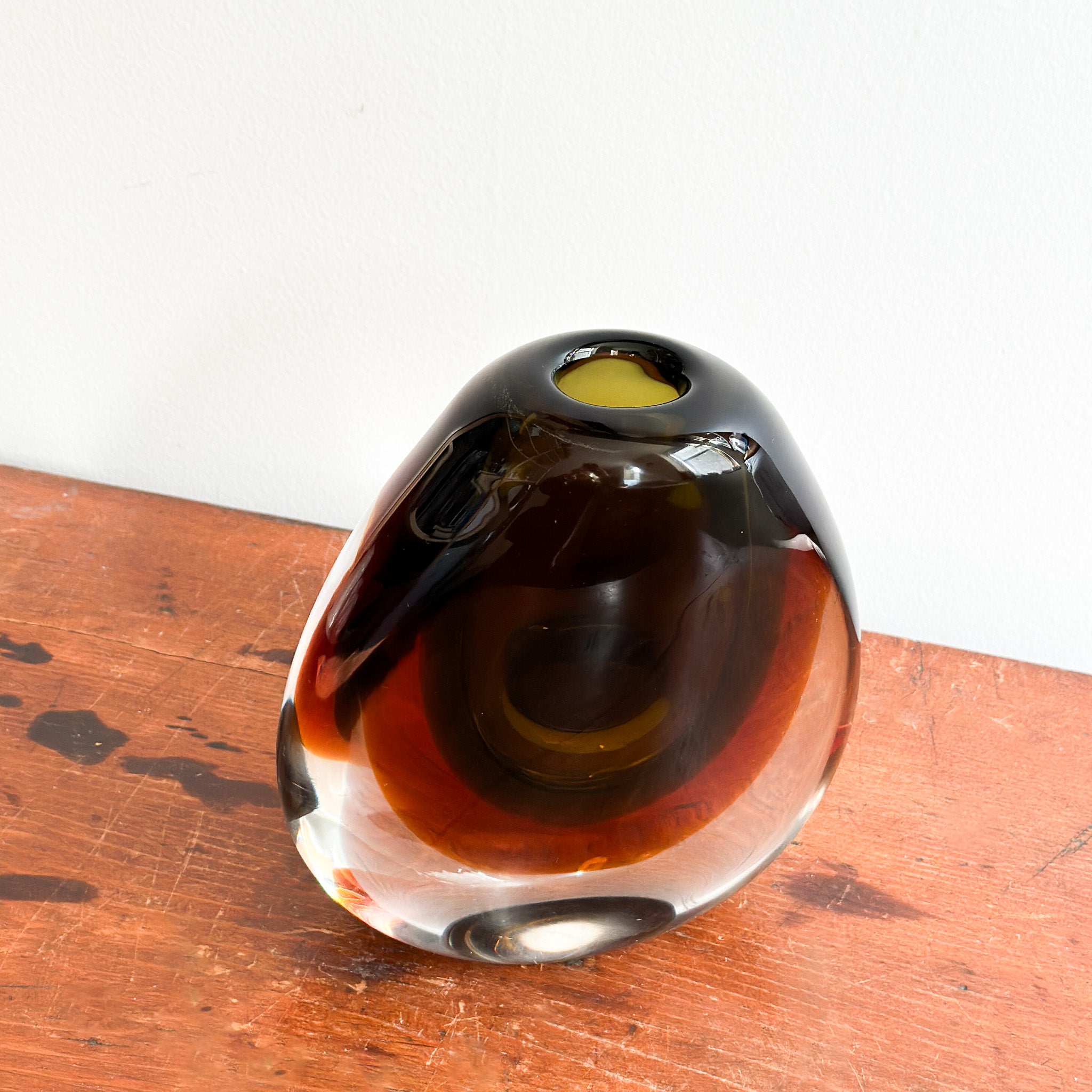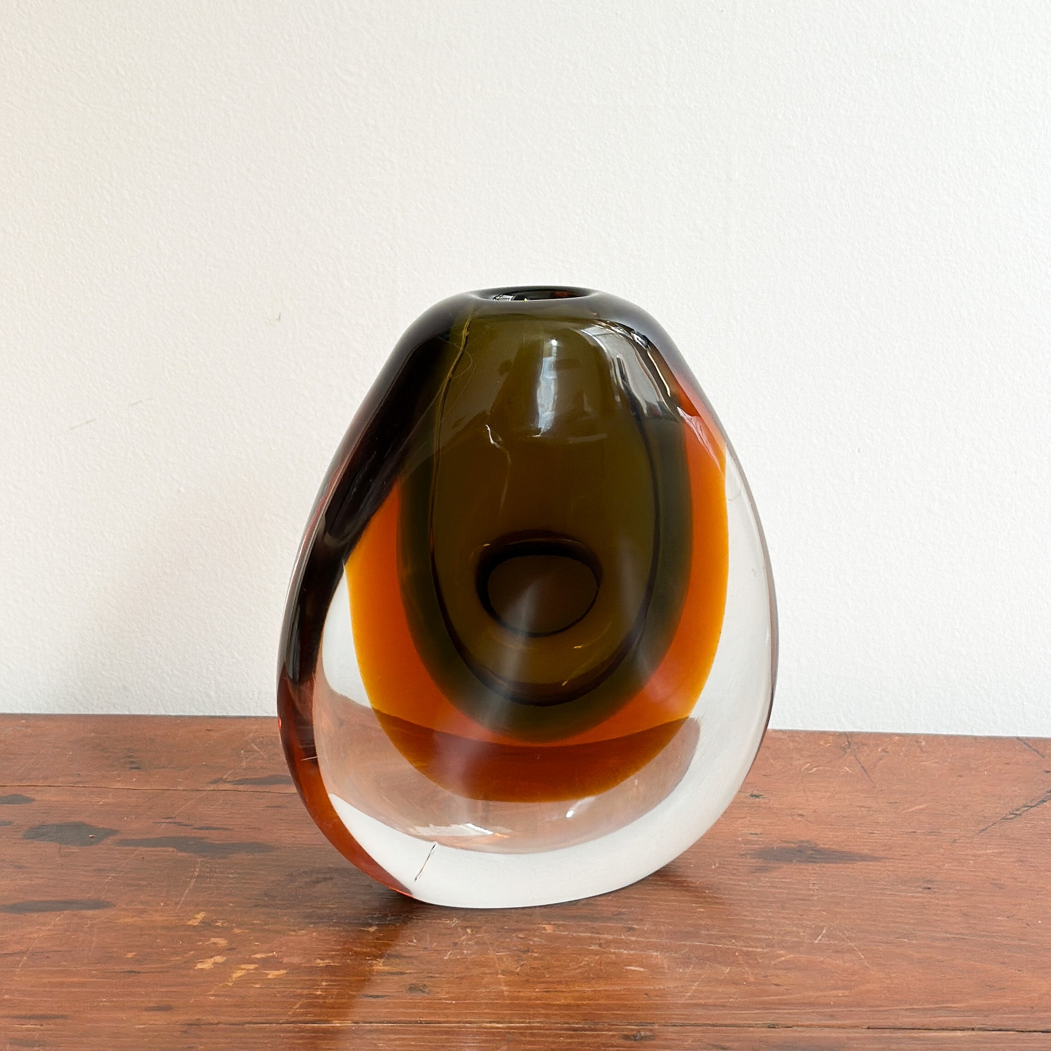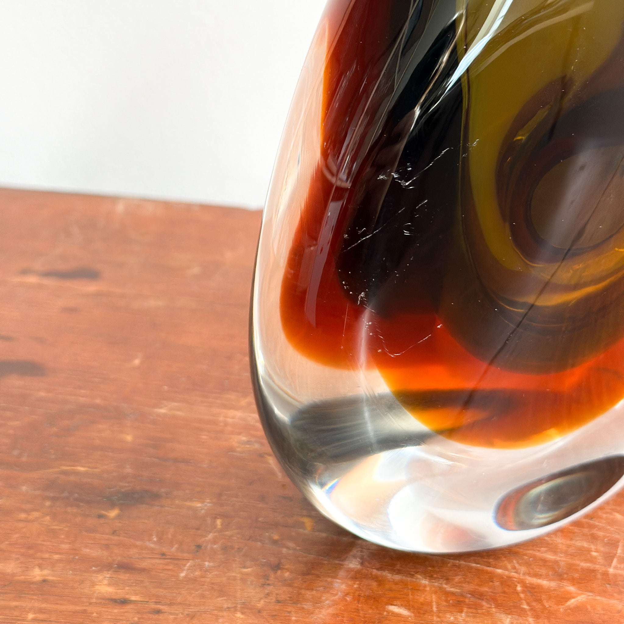 Mid-Century blown sommerso (submerged) glass vase in neutral two-tone colorway. Vladimir Mika for Moser Glass. Czech Crystal.